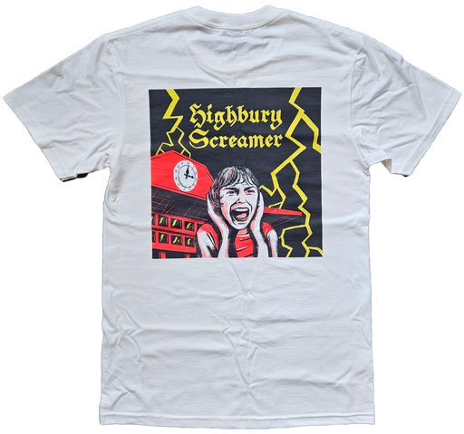 Highbury Library Screamer t-shirts with reverse design print by the brilliant Daryl Rainbow Short sleeve t-shirt in white colour manufactured by Gi...