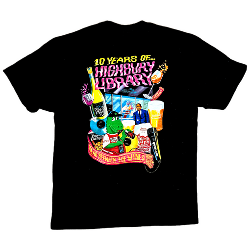 Black Short Sleeve T-ShirtOnly 1 left!Celebrating 10 years of Highbury Library with some of favourite things! Design print by the brilliant Daryl Rainbow Short sleeve Gildan Hammer t-sh...